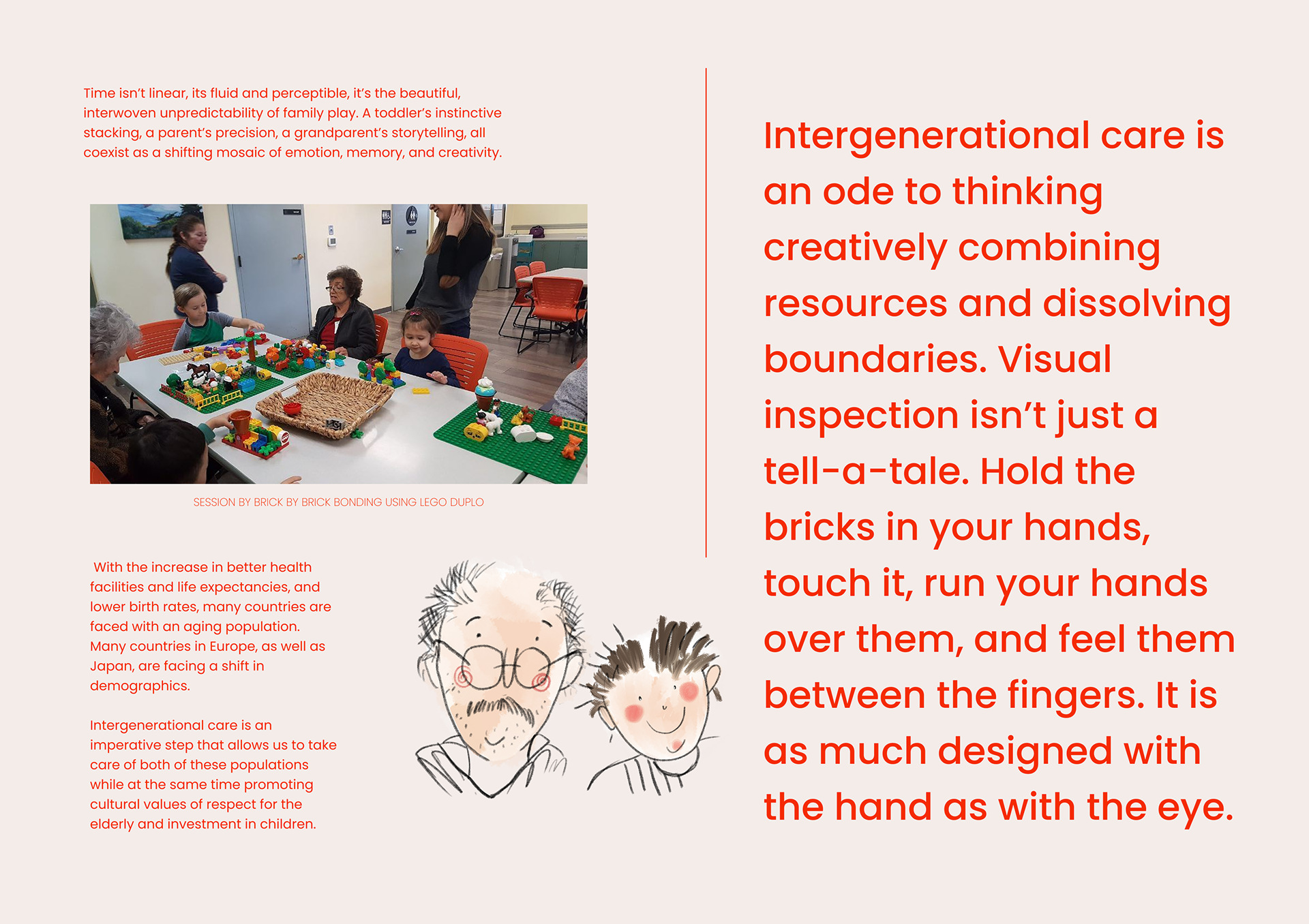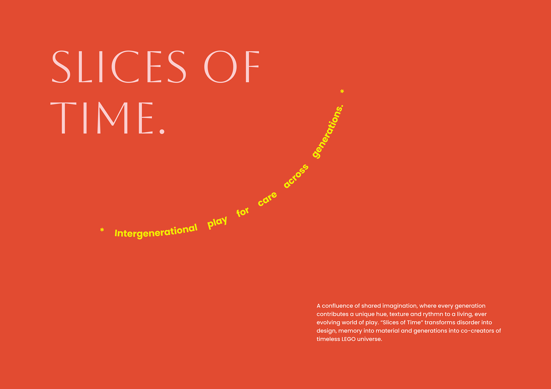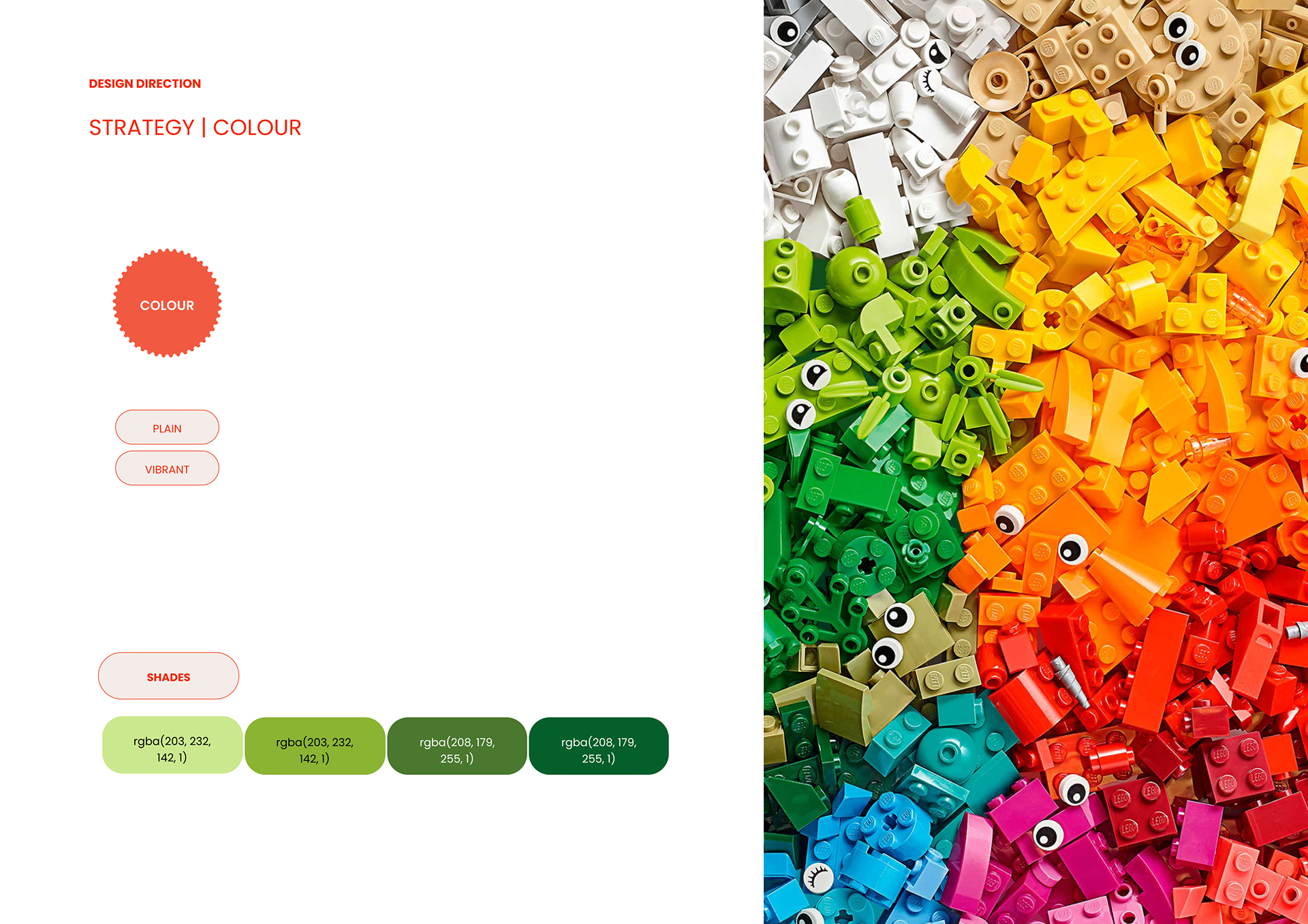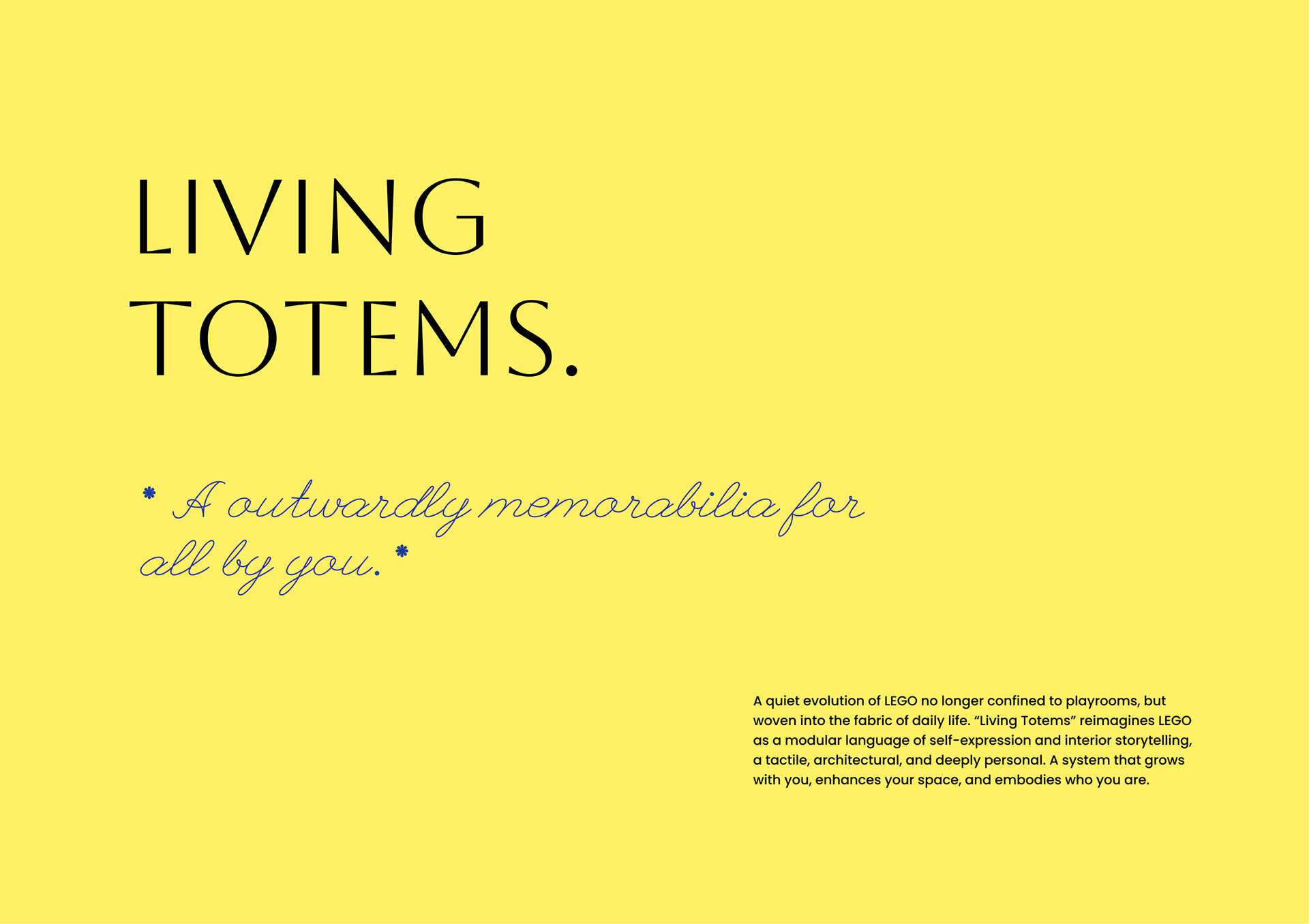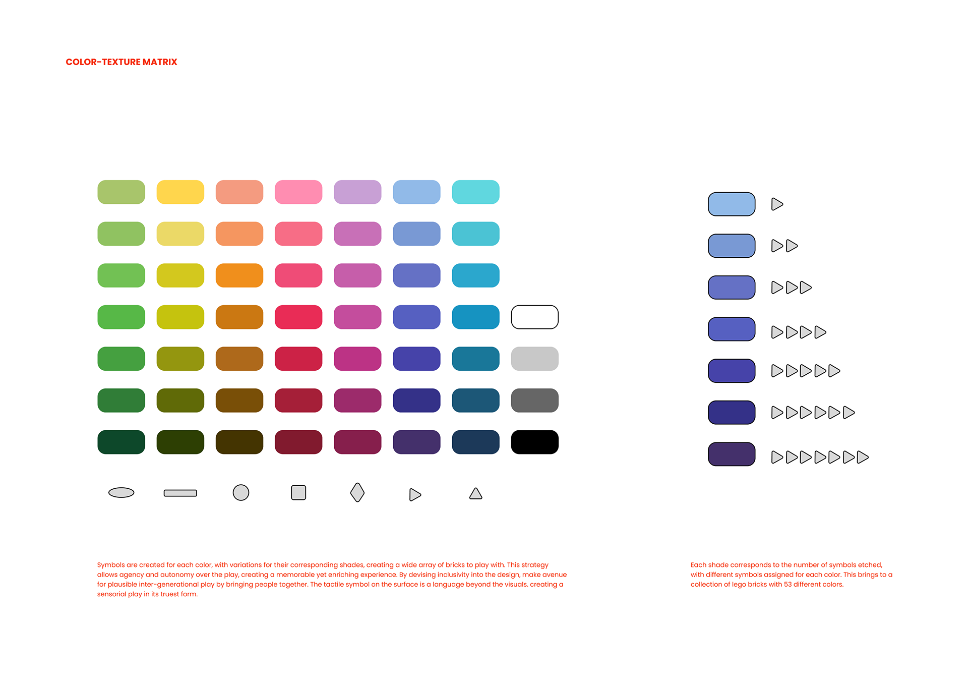 This project reimagines LEGO not just as a toy, but as a language of touch, color, and emotion, a celebration of how play can evolve, expand, and belong. It takes two joyful leaps in different directions. One explores the colors you can feel, crafting a world of bricks designed for everyone- even those who see the world a little differently. Here, textures become storytellers and finishes turn into whispers of inclusion. The other direction brings play home. Quite literally. Transforming LEGO from a fleeting pastime into a keepsake, a totem, a living memory that sits proudly on a shelf, glowing with the quiet magic of nostalgia. Together, they ask a simple question: what if LEGO was not just built, but kept — not just played with, but lived with?